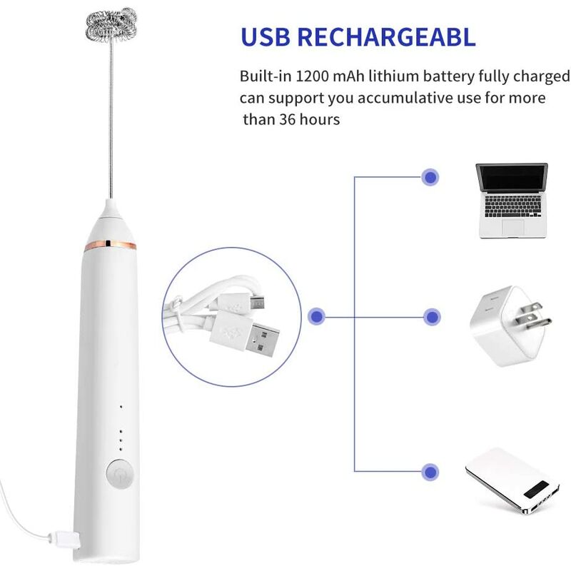 Ricarica rapida e facile da trasportare - : il montalatte portatile è alimentato da una batteria al litio ricaricabile incorporata da 1200 mAh, non è necessario sostituire la batteria, che è ecologica e consente di risparmiare denaro. Una ricarica completa richiede 6 ore per supportare 36 ore di utilizzo cumulativo ed è dotata di un cavo di ricarica USB e di una porta di ricarica per la ricarica su qualsiasi interfaccia USB, comoda da usare a casa, in ufficio, picnic in campeggio o in viaggio. 【Utensili da cucina e caffè professionali】: il nostro montalatte è dotato di 2 diverse teste di frusta in acciaio inossidabile per uso alimentare. La frusta a palloncino ti consente di utilizzare rapidamente e facilmente per preparare deliziosi dessert per la tua famiglia e i tuoi amici E deliziose uova, il montalatte ti consente di mescolare frullati, frullati, frullati, salse per insalata come un barista anziano e creare un ricco strato di schiuma per cappuccini al caffè antiproiettile. 【Facile