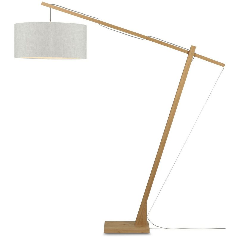 La collezione Montblanc mescola sapientemente materiali naturali e design contemporaneo, in uno spirito chic contemporaneo. Queste lampade combinano tonalità di lino organico con una struttura in bambù naturale. Perfetta in un soggiorno o come luce da lettura. GOOD&MOJO fornisce un'illuminazione eco-responsabile realizzata interamente con materiali sostenibili e/o riciclati 1 lampadina E27 max 60W NON INCLUSA IP20 Lunghezza cavo elettrico 220 cm con interruttore ON / OFF Dimensioni: L 163 cm, H 218 cm Dimensioni paralume: Diametro 60 cm, H 30 cm Dimensioni base: L 43 cm, Lunghezza 25 cm, H 4 cm