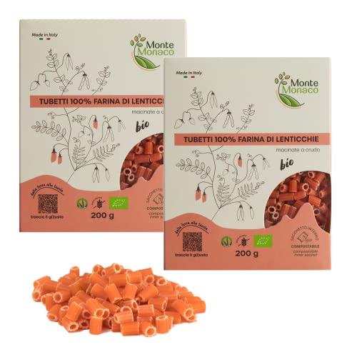Monte Monaco - Bipacco Minestrine Pasta di legumi 100% Farina di Lenticchie BIO, pasta proteica e naturalmente senza glutine, 2 x 200 gr