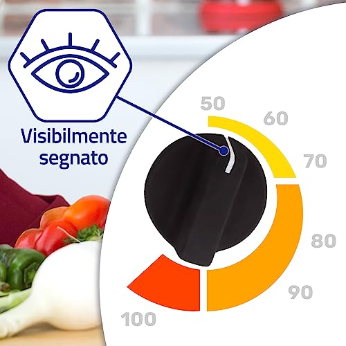 La manopola è contrassegnata in modo chiaro e visibile, consentendo agli utenti di identificare facilmente le varie funzioni, modalità e impostazioni di temperatura del robot da cucina.