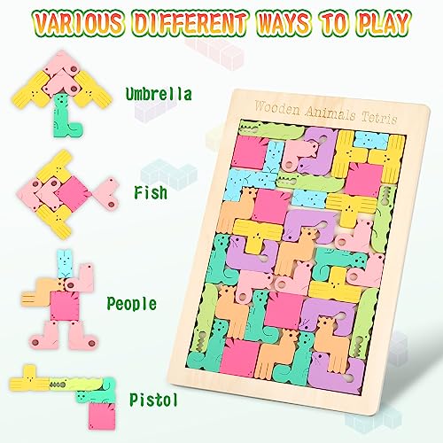 Montessori Giocattoli Puzzle Legno Dinosauro Combinazione Combinazione (Tetris Giochi)