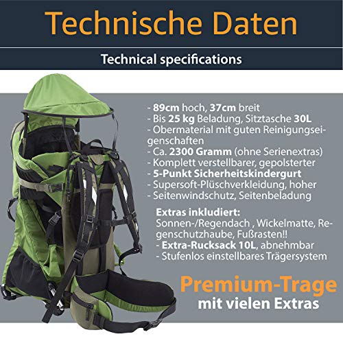 MONTIS Ranger PRO - Zaino Porta Bambino - 25kg - Diversi Colori (Verde)
