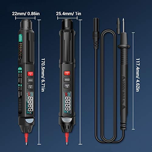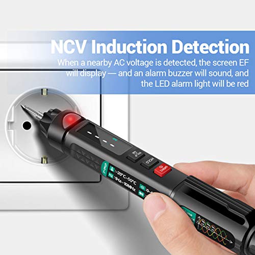 MULTIMETRO A PENNA VERSATILE: questo multimetro offre test di tensione / resistenza / capacità / diodo / frequenza / temperatura, continuità, rilevamento della sequenza di fase senza contatto e linea zero, ecc.