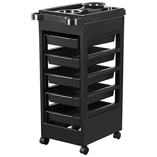Monumart 5 cassetto monocromatico salone parrucchiere parrucchiere bellezza stoccaggio carrello su ruote, in plastica nera