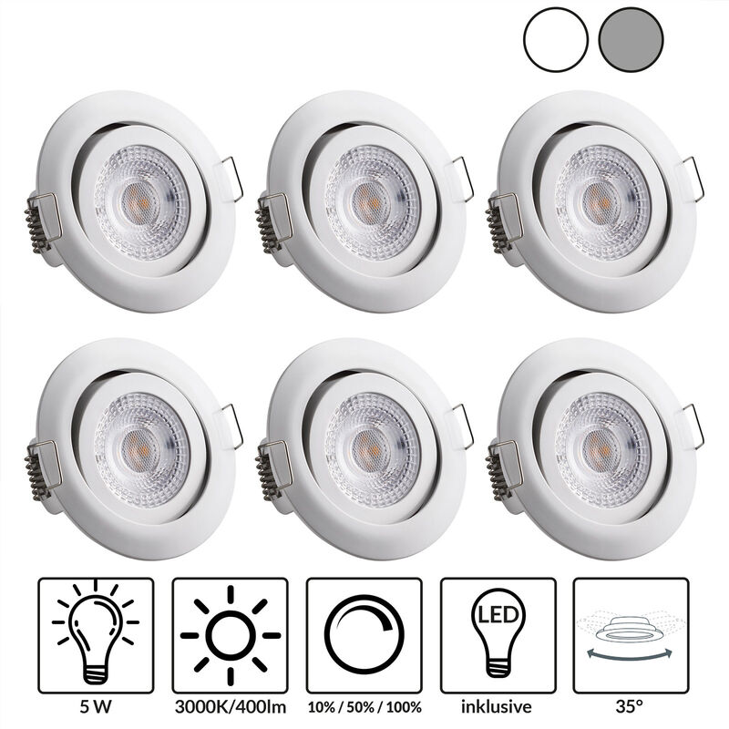 Regalate un tocco di luce & eleganza alla casa con i faretti di MONZANA! I faretti da soffitto a LED Krog di Monzana, disponibili in un pratico set da 6 o da 12, sono l'elemento di arredo ideale per qualsiasi camera. Particolarmente adoperati in cucina, in bagno, in ufficio o nei negozi, i faretti sono dotati di lampadine a LED incluse a basso consumo energetico. Ciascuno spot ha una profondità di installazione ridotta di soli 30 mm e sono quindi installabili ovunque e con un foro dal diametro di soli 68 mm. Ogni lampada da incasso è orientabile fino a a 35° per illuminare perfettamente qualsiasi ambiente creando l'atmosfera ideale in ogni momento. È possibile installare il set sia sul soffitto che sulle pareti. Con 400 lumen per spot, le plafoniere emanano una luce bianca calda piacevole e regolabile su 3 livelli (10% / 50% / 100%) tramite qualsiasi interruttore standard. Vantaggi del prodotto: Luci dimmerabili su 3 livelli Lampadine a LED incluse Profondità di installazione ridotta