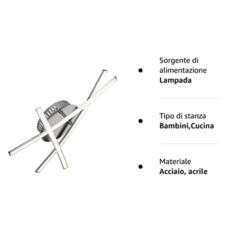 LED INCLUSI: La piacevole luce bianca calda con un colore di luce di 3000 Kelvin è distribuita uniformemente nella stanza. Le fonti luminose installate fisse hanno una lunga durata (25.000 ore) grazie alla scheda LED a risparmio energetico. La lampadina inclusa nella fornitura ha la classe di efficienza energetica A+ ed è quindi efficiente dal punto di vista energetico.