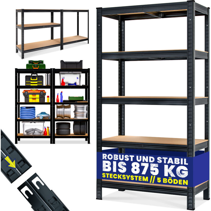 Grazie all'intelligente sistema a innesto senza viti, il montaggio e lo smontaggio della scaffalatura sono più facili. Entrambi i ripiani possono essere montati in modo versatile. Le distanze tra i singoli ripiani possono essere scelte liberamente Diverse misure: 2x scaffale - 5 ripiani per scaffale - 875 kg di portata per scaffale - ogni scaffale 180x90x40cm 2x scaffale - 5 ripiani per scaffale - 875 kg di portata per scaffale - ogni scaffale 180x90x40cm - nero Scaffale - 5 ripiani - 875kg - 180x90x40cm Scaffale - 5 ripiani - 875kg - 180x90x40cm - verniciato a polvere - blu Scaffale - 5 ripiani - 875kg - 180x90x40cm - verniciato a polvere - rosso Scaffale - 5 ripiani - 875kg - 180x90x40cm - verniciato a polvere - nero Scaffale - 5 ripiani - 875kg - 180x90x60cm Scaffale - 5 ripiani - 350kg - 170x75x30cm (Senza supporti trasversali) Scaffale - 4 ripiani - 280kg - 170x75x30cm (Senza supporti trasversali) Scaffale - 4 ripiani - 700kg - 160x90x40cm Vantaggi: Scaffale in metallo Sistema a