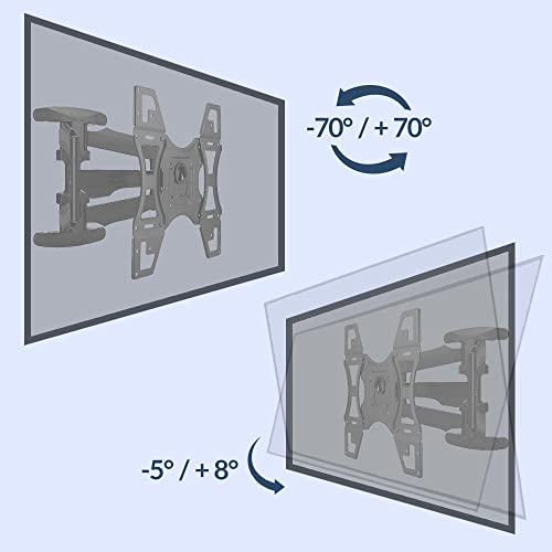 ANGOLAZIONE OTTIMALE: lo schermo può essere inclinato in modo flessibile di 5 gradi verso l'alto e di 8 gradi verso il basso e ruotato di 70 gradi a destra e a sinistra. In questo modo avrete una visione perfetta e priva di riflessi dell'immagine televisiva in ogni momento.