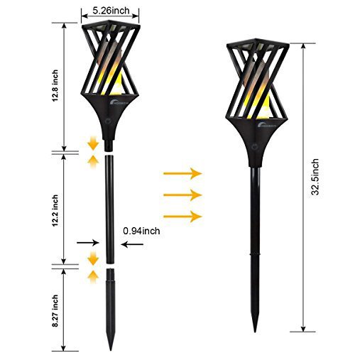 Moobom Solar Garden Torch Lights 96 LED IP65 Impermeabile Dancing Flickering Fiamma Lampada di illuminazione di paesaggio per Garden Pathways Patio Yard Lawn Driveway (2pcs-black)