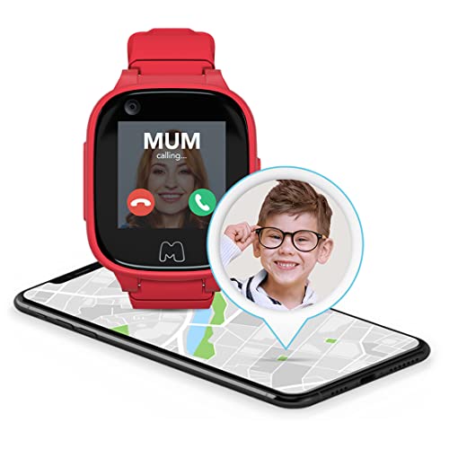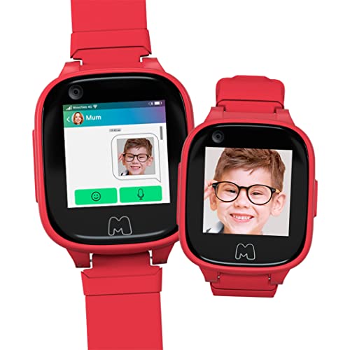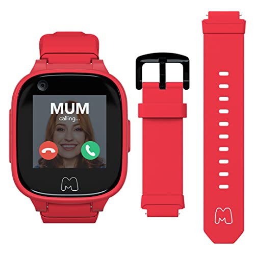 Moochies Connect All-In-One 4G Smartwatch Phone per bambini, touchscreen, videochiamate, messaggi, posizione GPS, fotocamera, controllo genitori, avvisi SOS, zone sicure, abbonamento richiesto - rosso