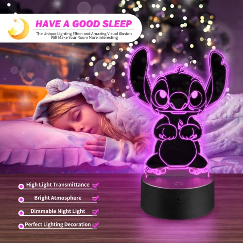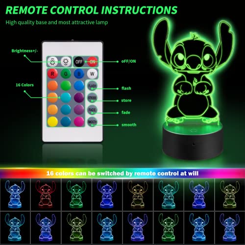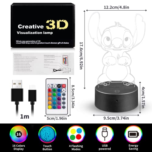 Moocuca Lampada Stitch 3D Luce Notturna per Bambini Telecomando Comandi 16 varianti di colore Decorazione per il comodino Ambiente creativo Regali di Natale compleanno per Ragazzo Ragazza