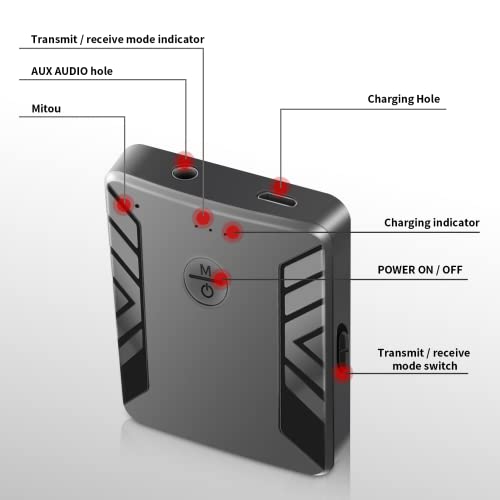 ☞ Facilità d'uso: l'adattatore Bluetooth è plug and play, nessun software o driver aggiuntivo da installare. Ricevitore bluetooth aux che può essere utilizzato come trasmettitore o ricevitore. Basta scorrere l'interruttore laterale per passare facilmente dalla modalità di trasmissione alla modalità di ricezione (la luce rossa è la modalità di trasmissione, la luce blu è la modalità di ricezione).
