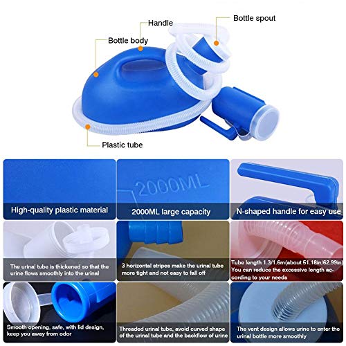 Mooderff, bottiglia per urina per uomo e donna, universale, portatile, con coperchio e tubo di prolunga, per orinatoio, per campeggio, auto, viaggio, 2000 ml