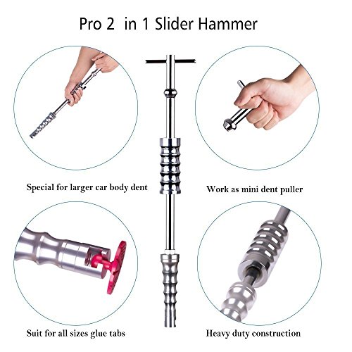 Di alta qualità: la spatola e le placchette per colla sono realizzate in plastica resistente che non si rompe facilmente durante l'uso. Questo martello scorrevole in acciaio inox ti aiuterà a liberarti facilmente delle ammaccature. Ottima qualità.