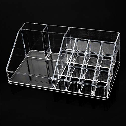 Questa custodia cosmetica trapezoidale trasparente è progettata con 12 reticoli quadrati e quattro griglie di diverse dimensioni. È semplice, resistente all'umidità e facile da pulire con un panno