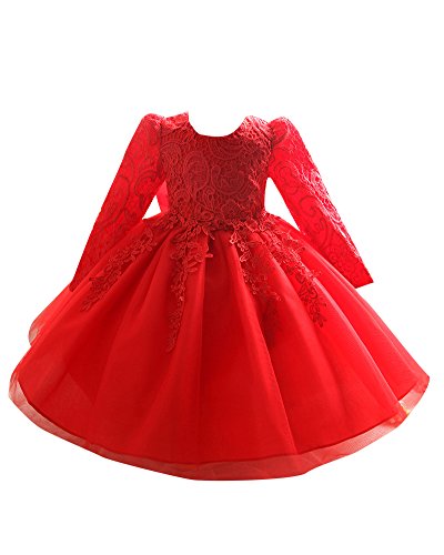 Moollyfox Abito Estivo Bambina Principessa da Sposa Vestito Bambina Abiti da Cerimonia Rosso 120cm