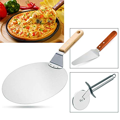 MOOLWEEL Rotella per Pizza 3 Pezzi, Paletta per Pizza, Paletta per Dolci in Acciaio Inossidabile, Manico in Legno, Ideale per Dolci, utilizzata per Forno, griglia e Cottura della Pizza