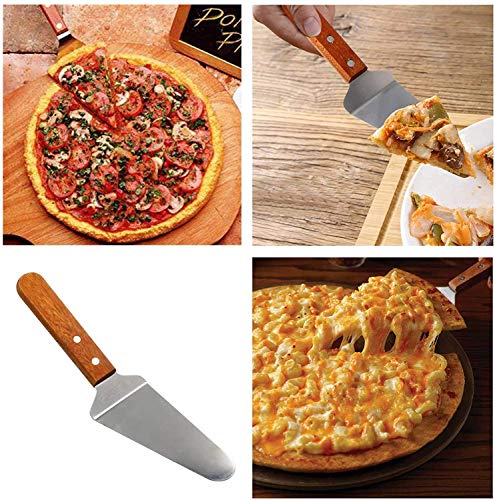 Conservazione facile e sicura: il pratico manico in legno impedisce efficacemente la conduzione del calore dalla lama in acciaio inossidabile per proteggere le mani dalle ustioni. Lavabile in lavastoviglie, senza spigoli vivi. Con un design perforato per riporlo facilmente. Strumento per pizza perfetto che può trasferire in sicurezza pizza e torte su una tavola o un contenitore.