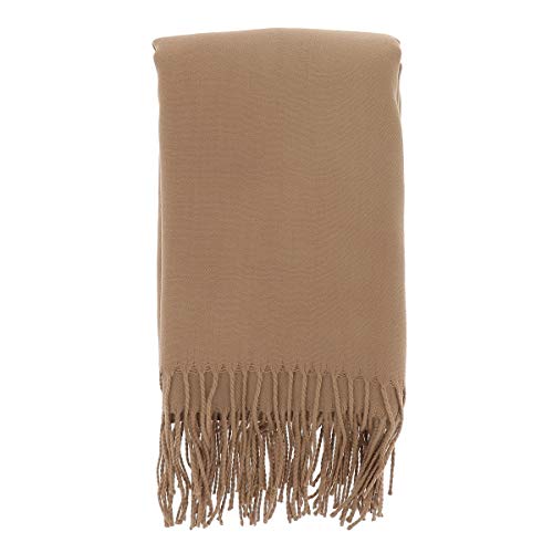 Moonbow Sciarpa Pashmina Donna Lana - Sciarpa Calda Inverno Classica e Elegante - Foulard Scialli Stole con Frange (Tortora)