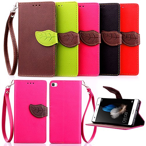 MOONCASE Foliage Design Custodia in Pelle Protettiva Cuoio Flip Cover Cover per Huawei Ascend P8 Lite Verde