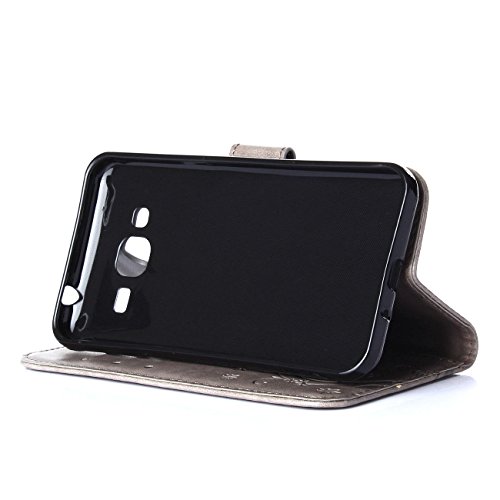 MOONCASE Galaxy J3 Custodia in Pelle Protettiva Flip Cover per Samsung Galaxy J3 Fiore Snap-on Magnetico Bookstyle TPU Case Grigio