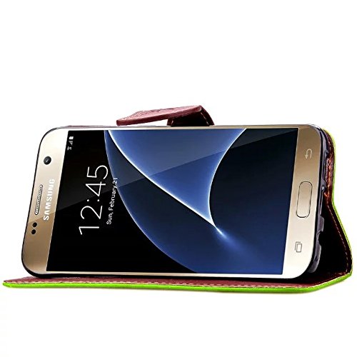 MOONCASE Galaxy S7 Custodia in pelle Protettiva Flip Cover per Samsung Galaxy S7 Fogliame Leaf Snap-on Magnetico Bookstyle Case Verde