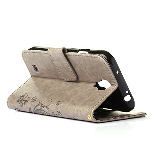 MOONCASE Galaxy S4 Custodia in Pelle Protettiva Flip Cover per Samsung Galaxy S4 I9500 Fiore Snap-on Magnetico Bookstyle TPU Case Grigio
