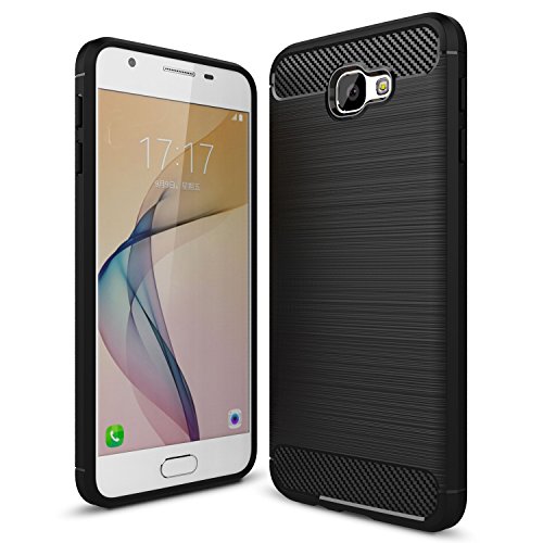 MOONCASE Galaxy J7 Prime Custodia, Fibres de carbone Rigida Flexible [Goccia Protezione] Armatura resistente agli urti di protezione Case Cover per Samsung Galaxy J7 Prime / On7 2016 Nero