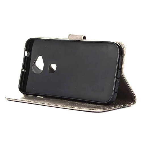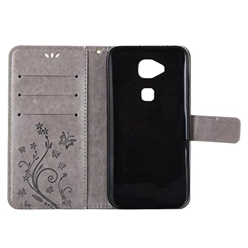 MOONCASE Huawei G8 Custodia in pelle Protettiva Flip Cover per Huawei G7 Plus / G8 / GX8 (5.5") Fiore Snap-on Magnetico Bookstyle TPU Case Grigio