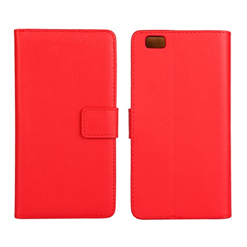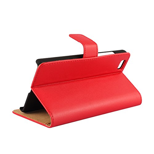 MOONCASE Huawei P8 Lite Case Premio PU Custodia in Pelle per Huawei Ascend P8 Lite Protettiva Portafoglio Flip Cover con Kickstand Fuction Rosso