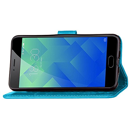MOONCASE Meizu M5 / Meizu Meilan 5 Custodia Trifoglio Foglia Modello Portafoglio Protettiva in Pelle per Meizu M5 / Meizu Meilan 5 Bookstyle Flip Cover Stand Case Blu