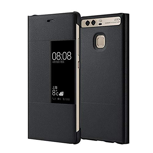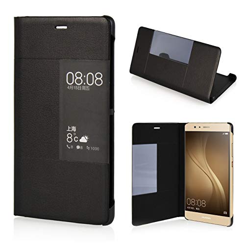 MOONCASE Case Premio Custodia in Pelle Protettiva Flip View Cover per Huawei P9 Plus 5.5" Nero