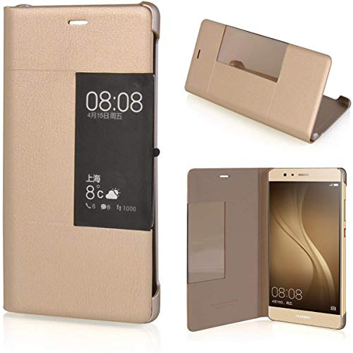 MOONCASE Case Premio Custodia in Pelle Protettiva Flip View Cover per Huawei P9 5.2" Oro