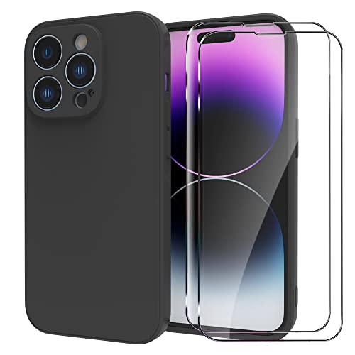 MOONESS Cover per iPhone 14 Pro Max 6.7" Custodia,Con 2 Pellicola Vetro Temperato Morbida Sottile Liquid TPU Case per iPhone 14 Pro Max 6.7" - Nero