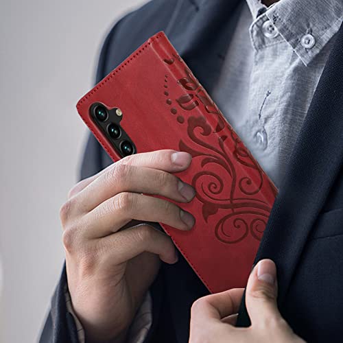MOONESS Cover per Samsung Galaxy A14 4G / 5G,Flip Custodia a Libro in Pelle PU Premium Goffratura Portafoglio Case per Samsung Galaxy A14 4G / 5G - Rosso