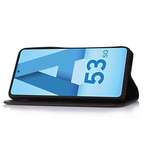 MOONESS Cover per Samsung Galaxy A53,Flip Custodia a Libro in Pelle PU Premium Goffratura Portafoglio Case per Samsung Galaxy A53 - Nero