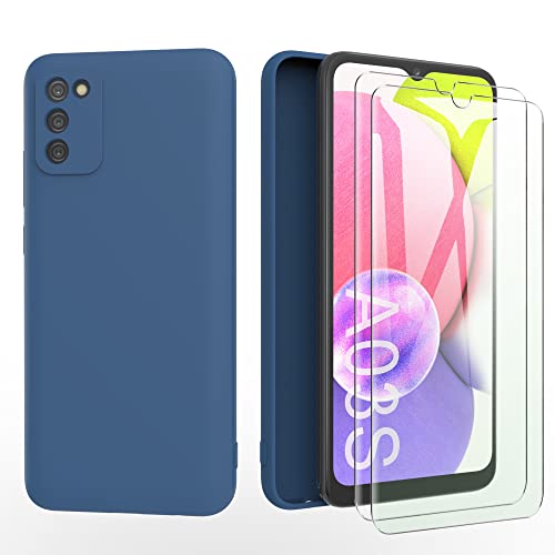 MOONESS Cover per Samsung Galaxy A03s Custodia,con 2 Pellicola Vetro Temperato Morbida Sottile Liquid TPU Case per Samsung Galaxy A03s - Blu
