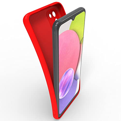 MOONESS Cover per Samsung Galaxy A03s Custodia,Con 2 Pellicola Vetro Temperato Morbida Sottile Liquid TPU Case per Samsung Galaxy A03s - Rosso
