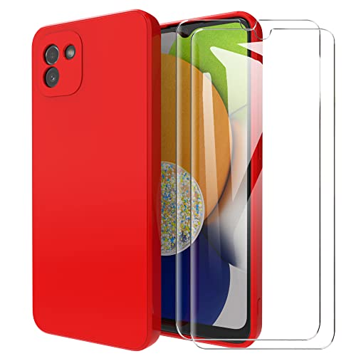 MOONESS Cover per Samsung Galaxy A03 4G (6,5") Custodia,Con 2 Pellicola Vetro Temperato Morbida Sottile Liquid TPU Case per Samsung Galaxy A03 4G - Rosso