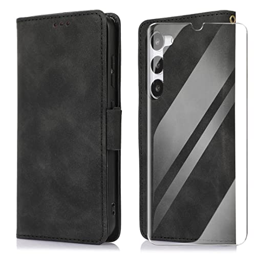 MOONESS Cover per Samsung Galaxy S23 5G Custoida Pelle + Vetro temperato,Flip Premium protettiva portafoglio Case Per Samsung Galaxy S23 5G - Nero