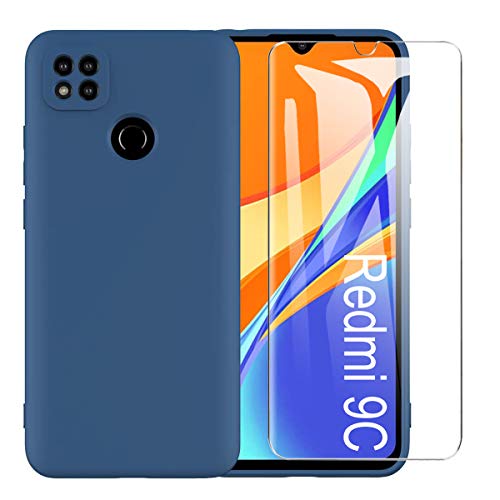 MOONESS Cover per Xiaomi Redmi 9C / Redmi 10A Custodia,Con 2 Pellicola Vetro Temperato Morbida Sottile Liquid TPU Case per Xiaomi Redmi 10A / Redmi 9C - Blu