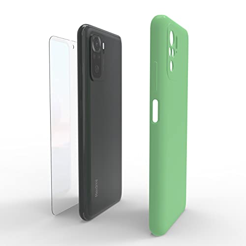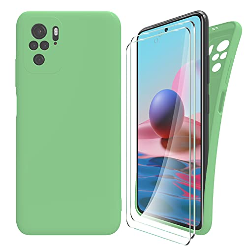 MOONESS Cover per Xiaomi Redmi Note 10 / Note 10s Custodia,Con 2 Pellicola Vetro Temperato Morbida Sottile Liquid TPU Case per Xiaomi Redmi Note 10 / Note 10s 4G - Verde