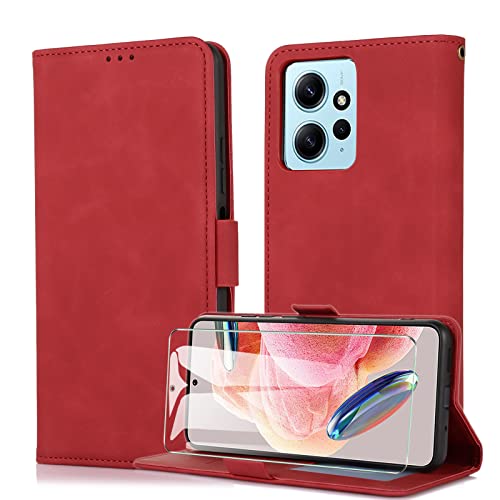 MOONESS Cover per Xiaomi Redmi Note 12 4G Custoida Pelle + Vetro temperato,Flip Premium protettiva portafoglio Case Per Xiaomi Redmi Note 12 4G - Rosso