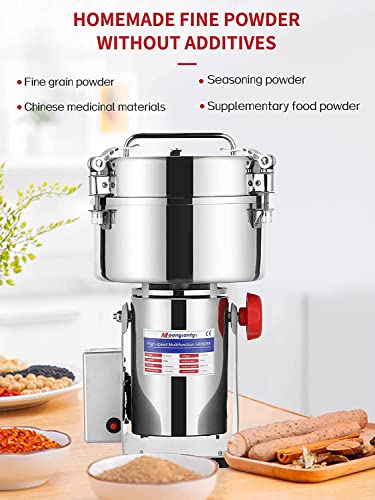 Moongiantgo 2500g Mulino per Cereali Elettrica, con Display a LED, Acciaio Inossidabile & Motore Commerciale 3600W 36000RPM, 30S Rettifica Ultra Fine ad Alta Velocità, per Cereali/Erbe/Spezie/Noci