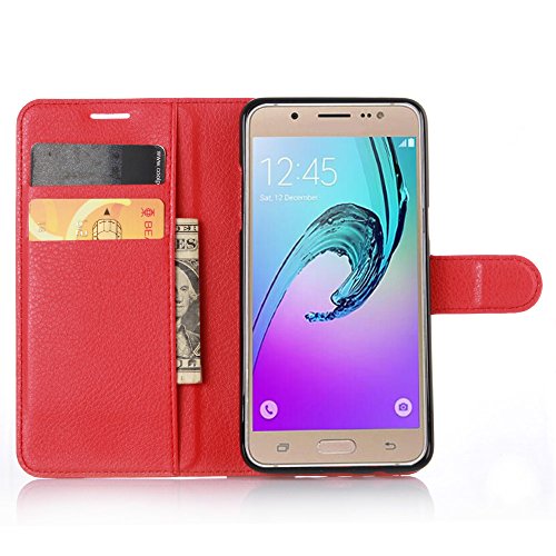 Moonmini Galaxy J5 (2016) J510 Custodia Cover PU Portafoglio Pelle Libro Stand Flip Slot Custodia Case con Chiusura Magnetica per Samsung Galaxy J5 (2016) J510 - Rosso