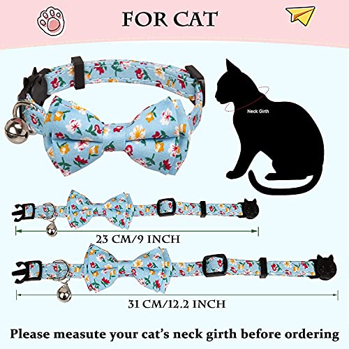Moonpet - Collare per gatti con motivo floreale, con papillon e campana, collare di sicurezza per gattini, colore: Blu