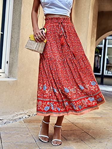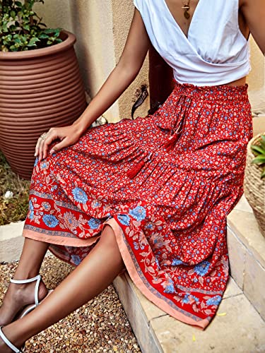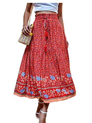 MOONSIROLI Gonna lunga da donna, morbida, elastica, elegante, per il tempo libero, Colore: rosso, XL