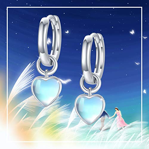 Moonstone - Orecchini a cerchio a forma di cuore, in argento Sterling 925, con pietra di luna arcobaleno, per donne, graziosi orecchini a cerchio