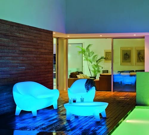 Moovere Divano grande a tre posti da esterno IP65 sedile moderno e resistente da hotel per la terrazza, il giardino e il business (Luce RGB - Solare + batteria)