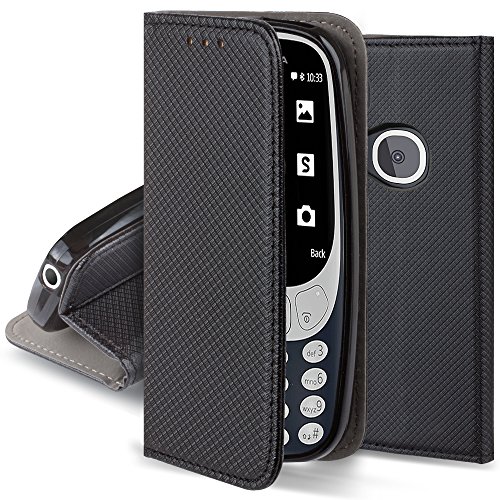 Moozy Cover Custodia a Libro per Nokia 3310 2017, Nero - Flip Smart Magnetica con Funzione di appoggio